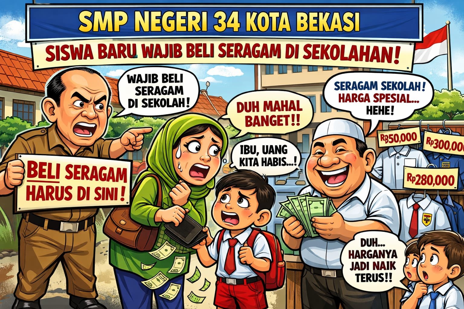 Praktik jual beli seragam di lingkungan sekolah negeri kembali menjadi sorotan. Kali ini, dugaan tersebut mengarah ke SMPN 34 Kota Bekasi yang berlokasi di Jl. Wibawa Mukti IV, Jatimekar, Kecamatan Jatiasih. Meski regulasi pemerintah dengan tegas melarang sekolah menjual seragam, informasi dari lapangan menunjukkan aktivitas tersebut diduga masih berjalan.